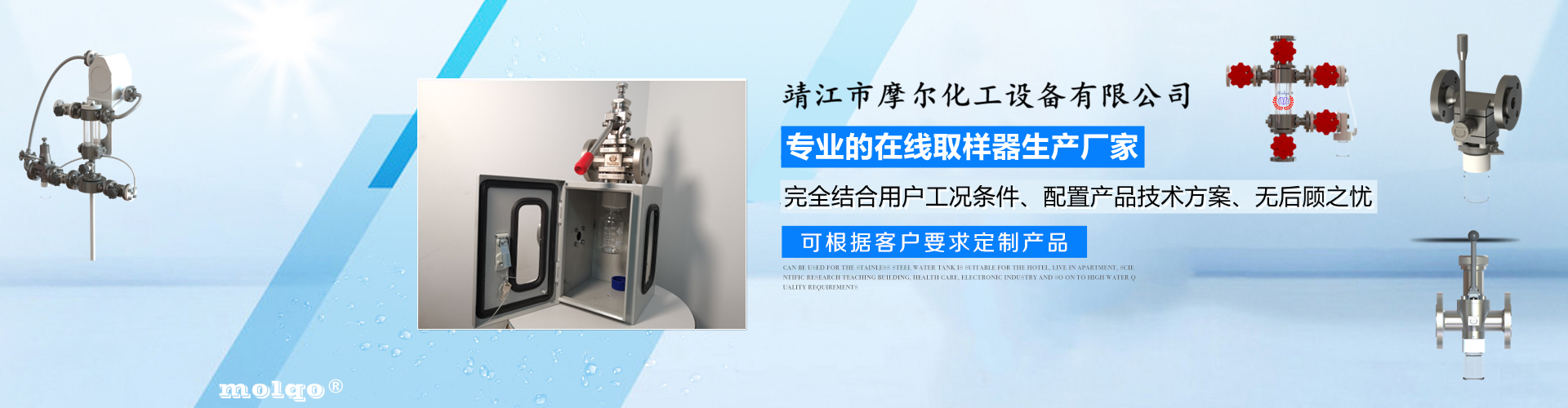 靖江市摩爾化工設備有限公司是一家專業(yè)從事反應釜在線取樣器、管道取樣閥、氟塑及搪玻璃襯里防腐設備、管閥的專業(yè)生產(chǎn)廠家,咨詢熱線:15061018812!